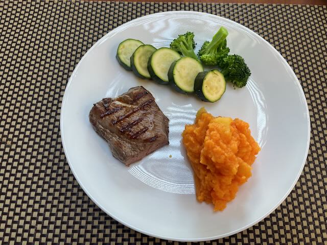 🟪 🟨 Lamb Steak with Swede Carrot Mash ; Broccoli and Zucchini